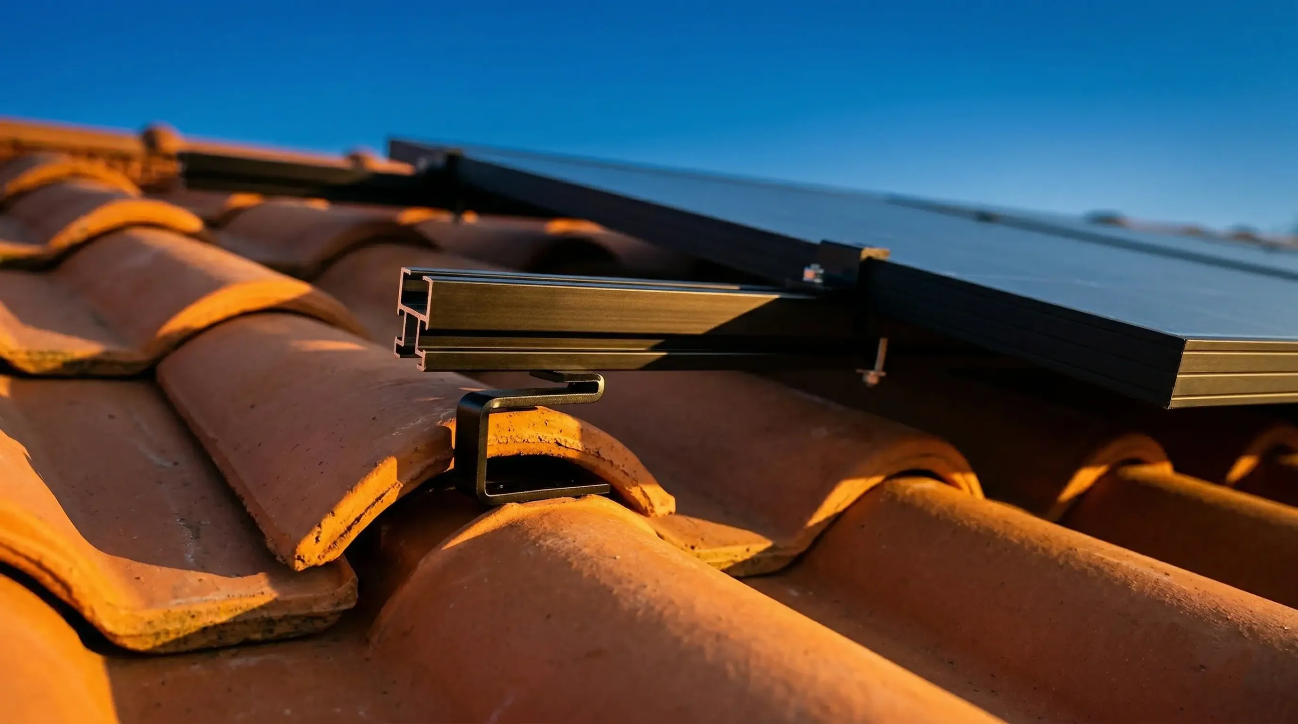 Installazione su tegole senza forature né viti. Aggancio sotto la tegola esistente per un montaggio sicuro e impermeabile.